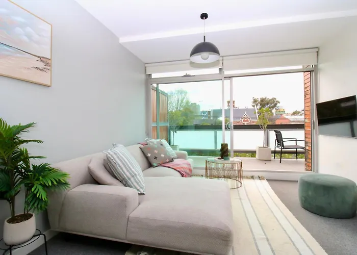 広々とした80m²のSt Kilda 2Br City Beach Escape With Free Parking メルボルンアパートから歩いて6分離れたSacred Heart Church St Kildaなどの市内の観光スポットに近い便利な場所にあります。 ビジネスとレジャーの両方でWi-Fiを利用することができます。